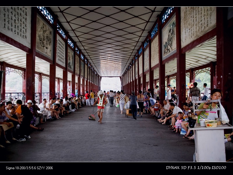 桥上坐满乘凉的人,非常壮观。我感觉桥上的温度比周围至少低2-3度