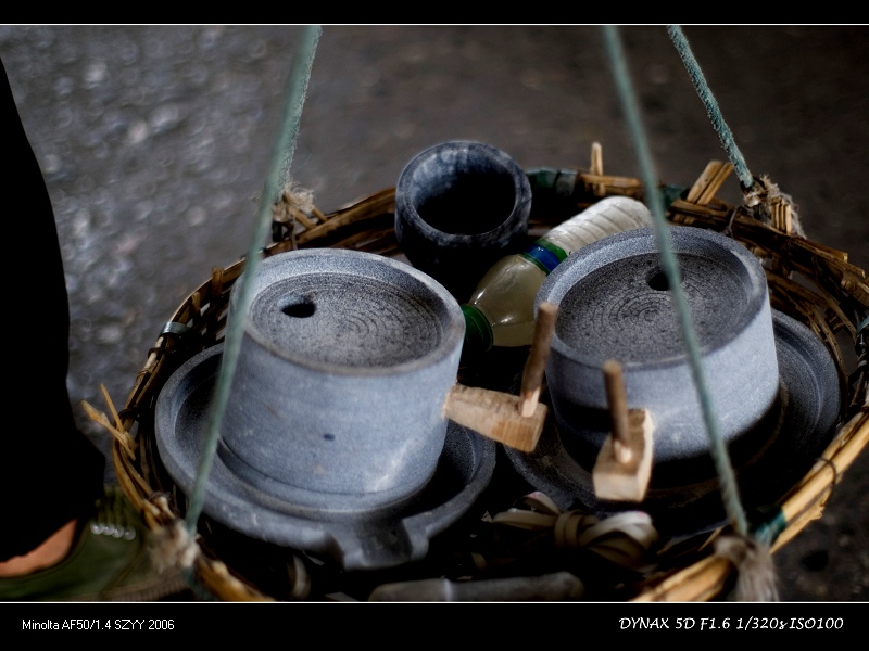 桥上小贩卖的石磨
