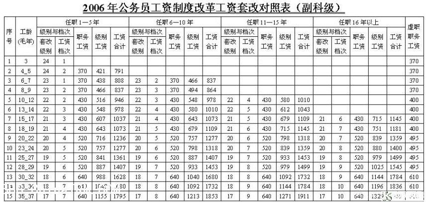 公务员级别工资标准表
