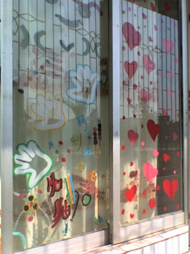 第二幅图的哪个有很多心的那个窗是偶的杰作呢```好开心啊``