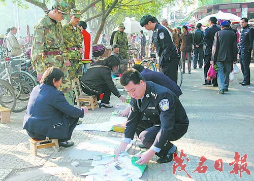 前天,市公安局领导作客“行风热线”时接到群众来电反映,市区河西红旗市场周边不少商贩摆卖“六合彩”资料,吸引大量“彩迷”围观、传播“六合彩”赌博信息,影响了交通,影响市场的正常经营。对群众反映的问题,市公安局领导非常重视,在下线的当天下午,专门召集了有关部门商讨解决的办法,并于昨天组成了联合执法队对此进行清理。昨天上午9时许,记者随执法人员来到这里,见到一些商贩正在叫卖“六合彩”资料。见到执法人员,商贩们一哄而散,执法人员快速出击,一举抓获10名非法出售“六合彩”资料商贩,缴获“六合彩”资料589份。并把抓获的人员带回派出所处理。