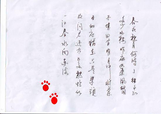 QUOTE(茶禅一味 @ 2007年01月26日 Friday, 03:39 PM) 春花秋月何时了 往事知多少 小楼昨夜又东风 故国不堪回首月明中 雕兰玉砌应犹在 只是朱颜该 问君能有几多愁 恰似一江春水向东流 "明月"应为"月明","彻"应为"砌","还"应为"能". 一幅五十多个字的作品硬伤就有几处,还需努力哦! [snapback]1640426[/snapback] 阿狼,看看高人的意见