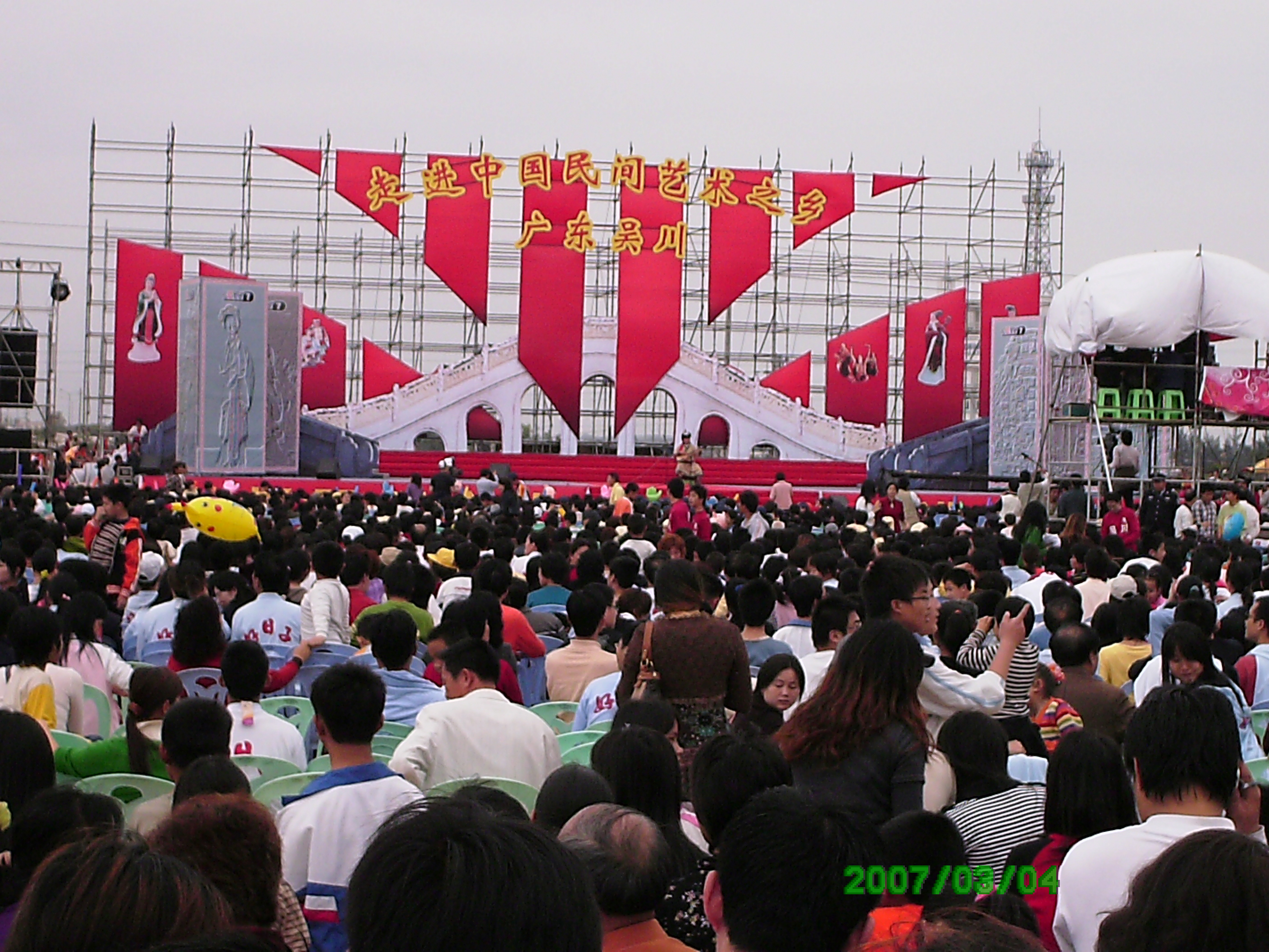 元宵节当天,吴川的一个运动场上人山人海,热闹非凡,原来是中央电视台在这是搞一个“走进民间艺术之乡”的大型节目,其中有多位著名歌手上台演唱了歌曲(谢军等)。只可惜我不会上传照片,望各位赐教!