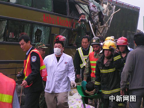 “我知道大事不妙,慌忙从驾驶室下来察看。第一眼就看到我那正在更换轮胎的助手躺在地上,身边满是鲜血。货车尾后是一辆大客车,车头撞向货车并陷进三米,车上、地上鲜血横淌,还不时传来阵阵的痛苦呻吟声,场面恐怖”。幸存货车司机向记者讲述时仍惊魂未定,手不停地抖索。