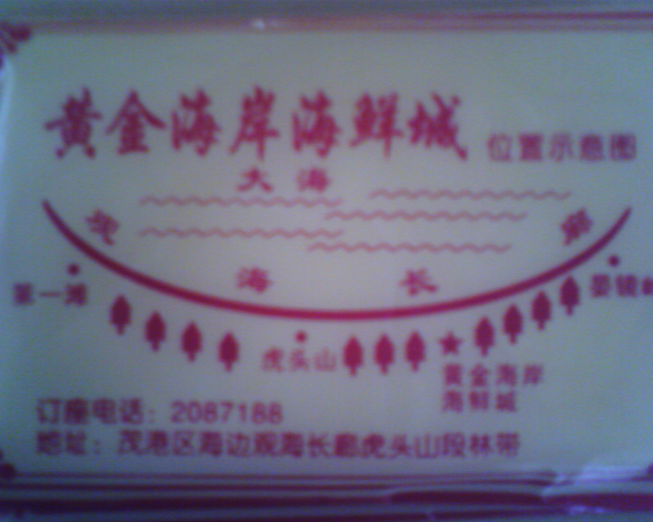顺便提一下一个吃海鲜的地方,周边风景迷人,海鲜新鲜.就在虎头山再一直向晏镜岭方向.名字好像是:黄金海岸.四人吃了二百不到.