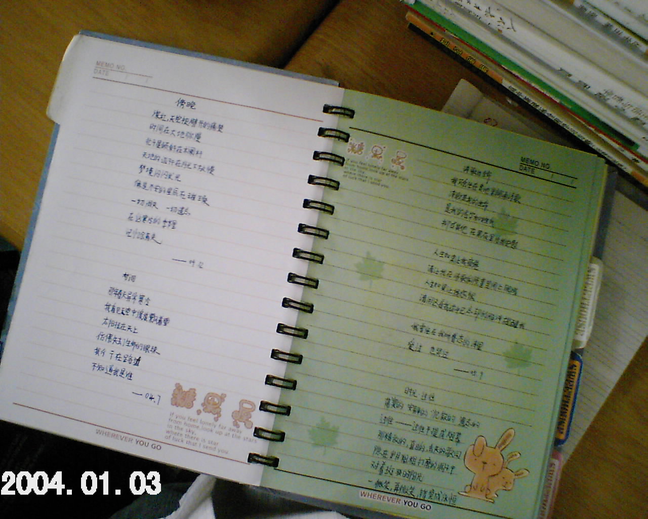 苏子佩 小学四年级 注册 2006-04-26 消息 288 反馈评分 0 点数 1 2007-05-18 #2 写诗超级无敌小本本 附件 PLUS0106.JPG 229 KB · 查看: 213 PLUS0104.JPG 209.6 KB · 查看: 239