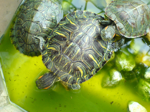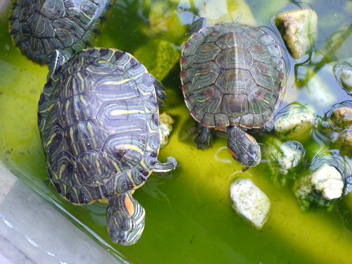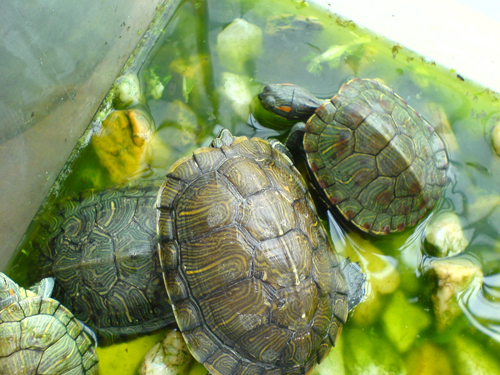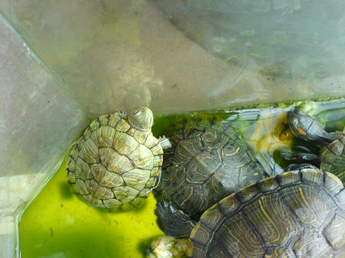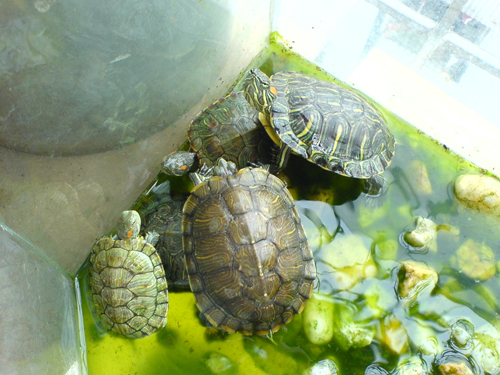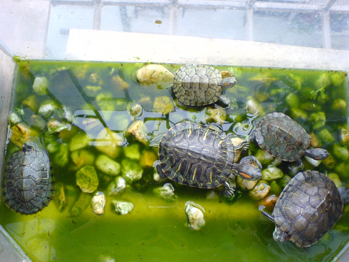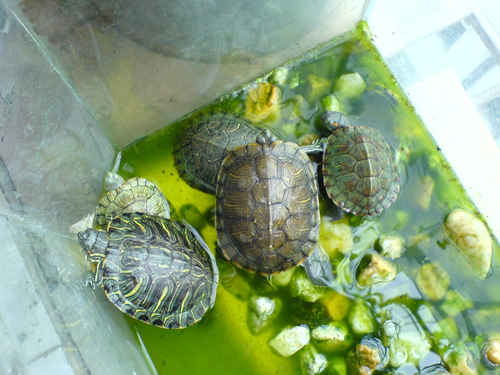 呵..那个水好脏喔....不过乌龟还小...还不能吃....记得在家喝过乌龟烫...很清甜呢....