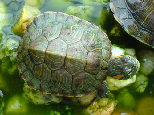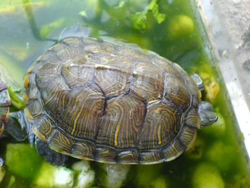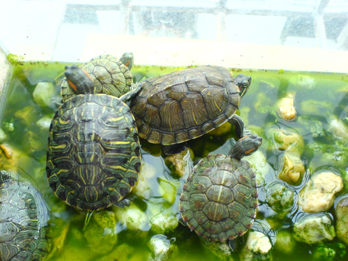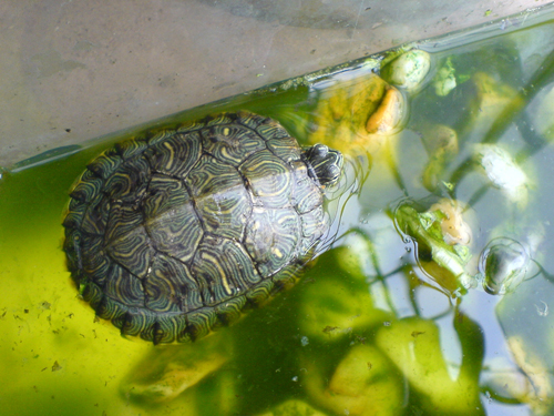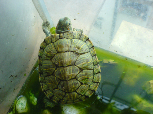 水该换了,不妨换过一个缸,,龟需要大的活动空间,,冬天不要放水,