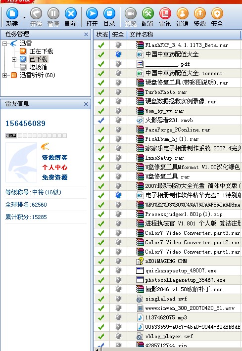 木糖醇 讲科学.破迷信.除陋习... 荣誉会员 注册 2005-07-25 消息 5,900 反馈评分 1 点数 61 年龄 37 2007-05-27 #2 你把"已下载"的项目都删除了. [attachmentid=133084] 然后去"垃圾箱"删除 [attachmentid=133083] 建议你重新安装迅雷,现在最新版本为5.6.2.300 http://down.sandai.net:8080/Thunder5.6.2.300.exe 附件 1.jpg 10.1 KB · 查看: 237 {07318E9C-EFBE-446D-A697-00F8D0FCEB0A}0.jpg 141.3 KB · 查看: 249