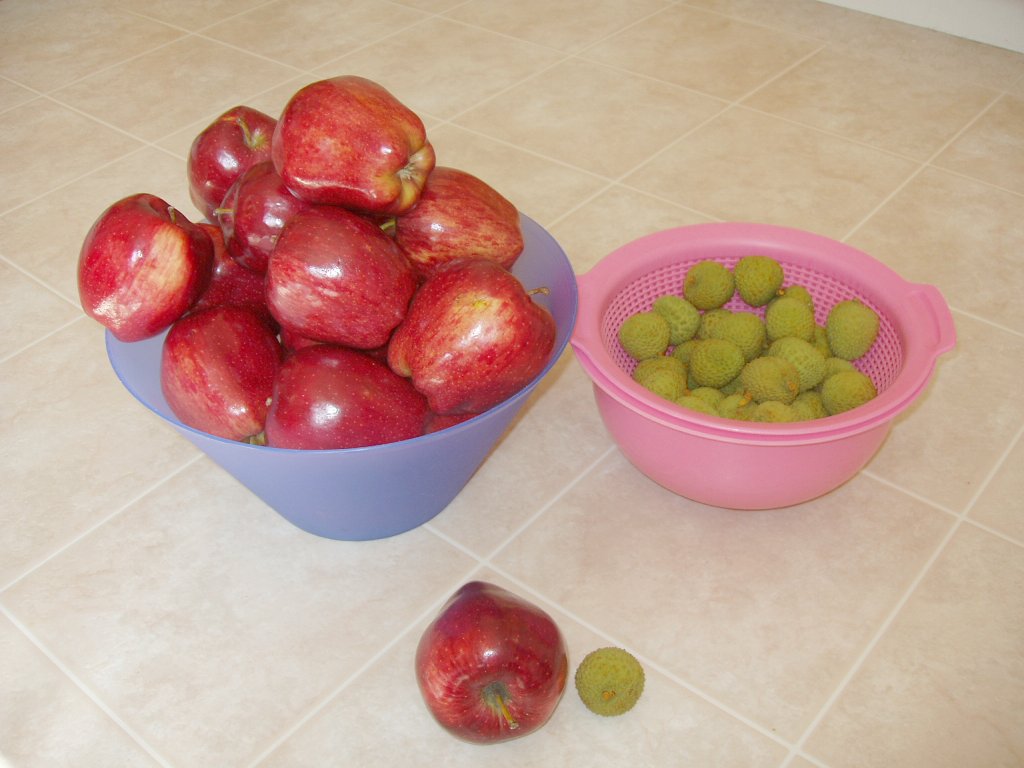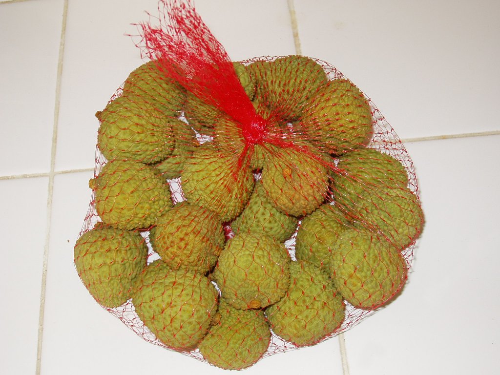 今天行超市见到有新鲜(当然是经过急冻后进口的啦,不知产地,可能是台湾的)荔枝。价钱是$ 3。59/磅(一磅等于0.908斤也就是9两,大约¥31RMB一斤吧?)。 打开来吃,有很多水,由于经过急冻后才可进口,没有荔枝的味道,也不甜。