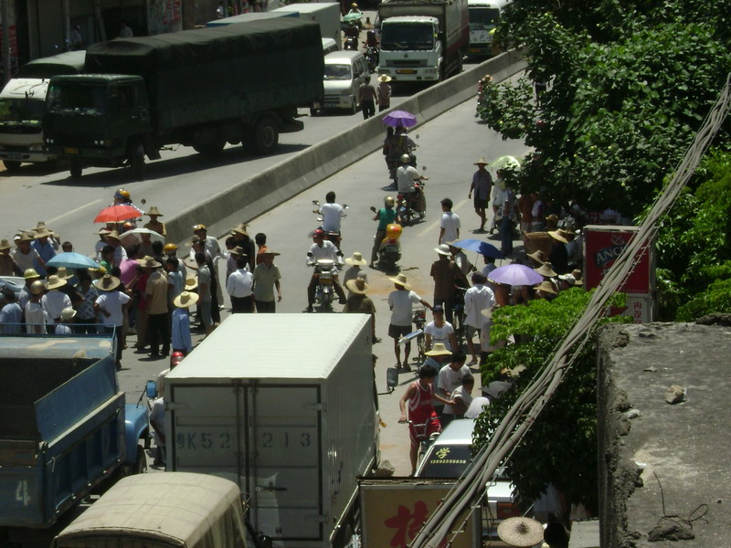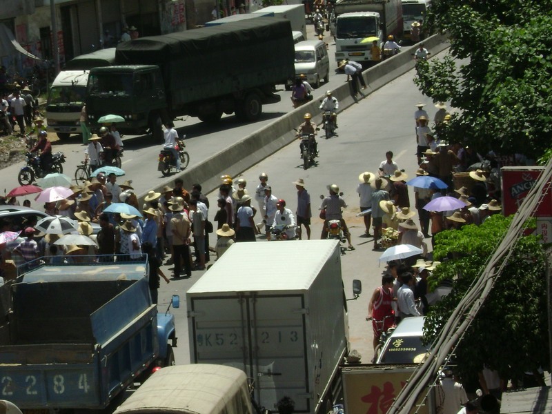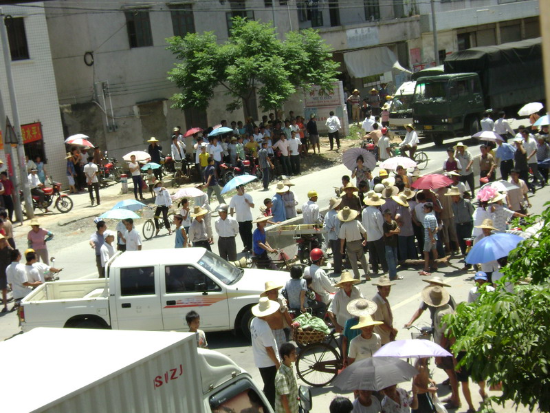 我听说了,是树仔镇政府的书记,让别人承包了水库,这么热的天气害得辛彼村、大唐村和茶山村的农作物没有水浇,都快要死亡。所以这三个村就组织起来去树仔镇政府讨个说法。