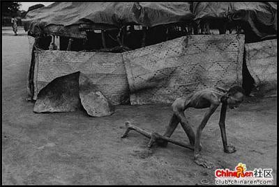 他还活着。 他就是一付活着的骨架! 极度虚弱中,艰难地向避难的帐篷爬去……
