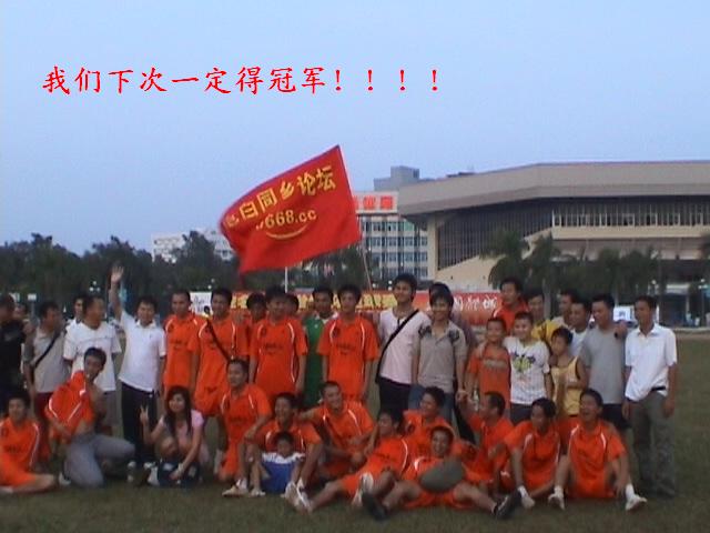 QUOTE(半个人 @ 2007年09月09日 Sunday, 06:36 PM) 1:2散场,荣获亚军! 走到这步已经很欣慰了,其实我们已经是最大的赢家了。 [snapback]1920642[/snapback] 确实,我们已经是最大的赢家,除了获得亚军,我们收获的快乐、收获的热情、收获的支持、收获的尊重、收获的拼搏精神等等是无可争议的第一。今天看了下半场比赛,在看台上,听到旁边的信宜队员高呼“电白队加油”!在完场时获得亚军的电白队员与支持者个个兴高采烈开香槟、拍照,而获得冠军的有主场之利的队却没什么表情。由此可见电白人的精神面貌是夸啦啦的!