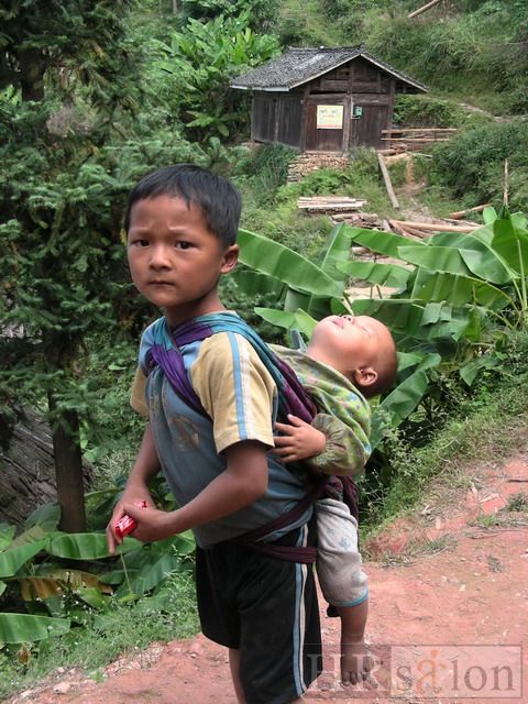乌叟那个背着妹妹的孩子,从进入我们视线开始,便始终保持着那份神情,即便当别的孩子拿着糖喜笑颜开的时候,他依旧凝皱着眉头。当问起他的爷爷身体安好否,他低着头,默默的说了两个字:死了。