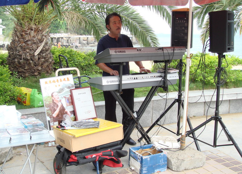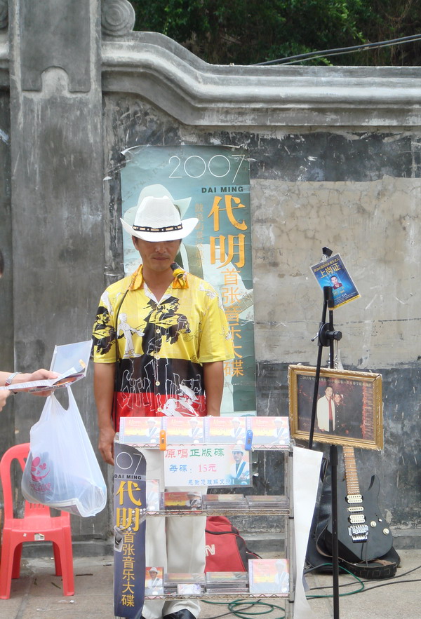 我们跟着歌声来到了一个小巷。。哇!型-声音十分的浑厚中气相当充足!厉害。。一个当地群众唱着当地的岛屿的民谣。。正点,还出了CD。。让我想起了。。斑竹。。 奶茶王子-你看看他们的“专业”期待你的CD能够出现在电白啊。。