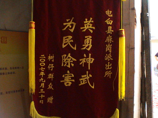 QUOTE(新款子弹头 @ 2007年09月30日 Sunday, 06:04 PM) 今天,树仔热心群众专程来到麻岗,送上锦旗感谢麻岗派出所全体干警! [snapback]1948379[/snapback] 很好 精神上的鼓励远比物质强得多.在电白的很多官就是因为有很强的拜金主义,所以电白水深火热