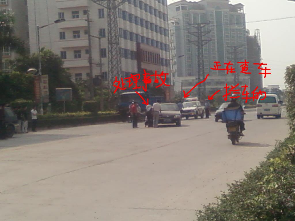 这个图并没有反映交警一边处理事故一边查车。一般来说,在处理事故时无时间查车的,可能楼主见交警在站着,害怕了便绕道走。