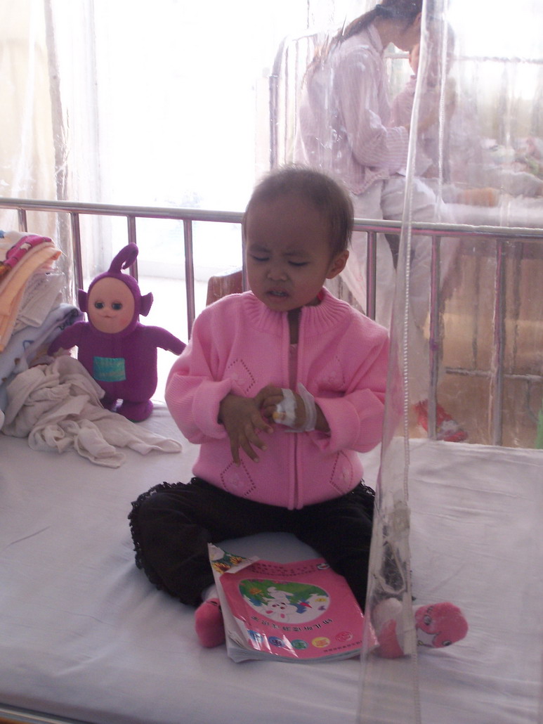 离开小宝所在的医院,我十一点多买了水果等食品才赶到崔若_小朋友所在的医院.还是她母亲陪着她在隔离的病房里,崔若_小朋友的奶奶也在外面守候,眼睛因为哭泣和流泪,已经是红红了,安慰了一番也不起作用....