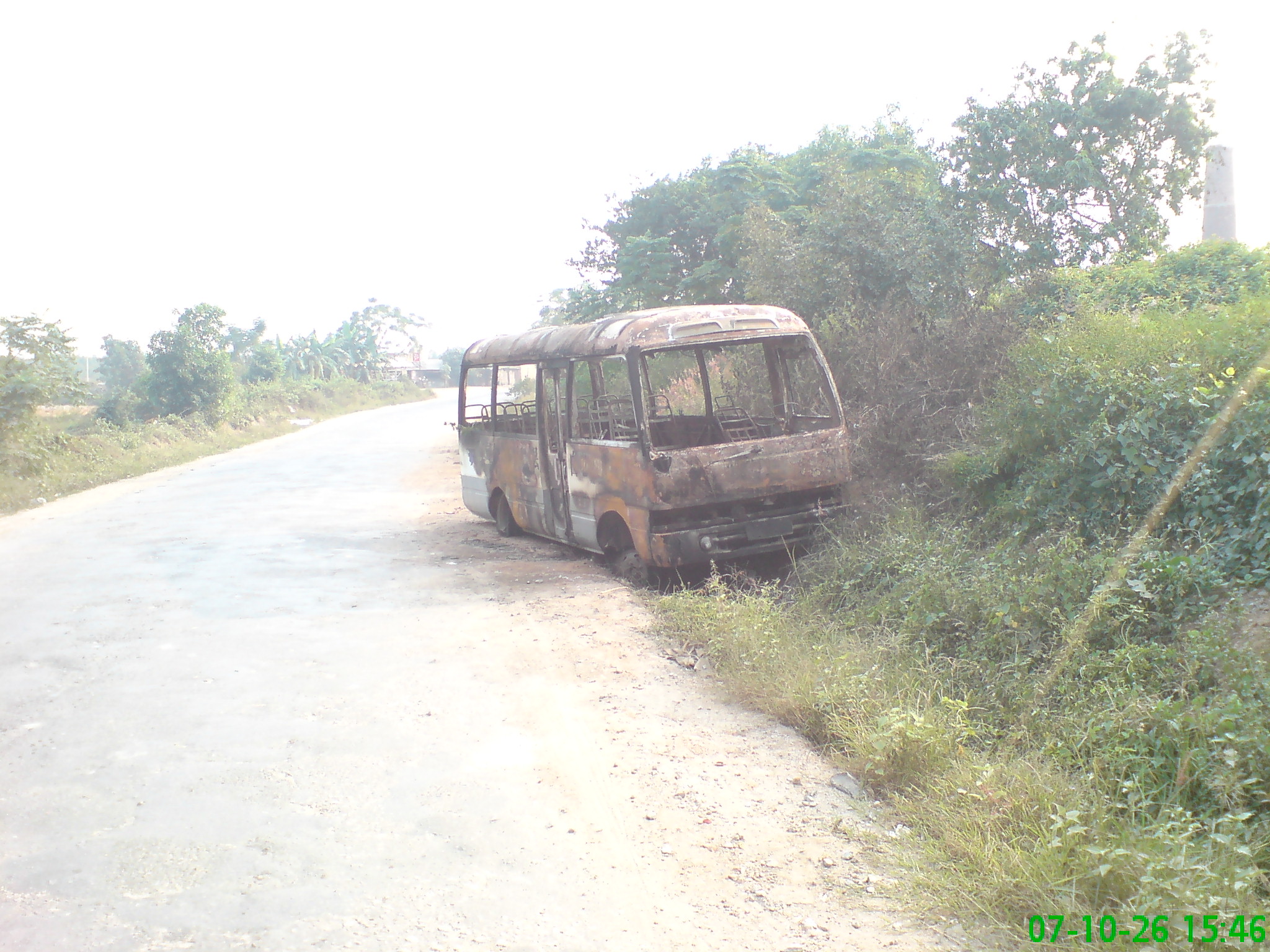 (screen.width*0.8-70)) this.width=(screen.width*0.8-70)'> 七那公路昨发生袭车事件 两辆客车被焚毁 本报记者 吴祖光 摄影报道 行驶中的客车被人截停并纵火焚烧,这一恶性袭车事件昨日下午就发生在七(迳)那(霍)公路茂港区七迳镇及坡心镇路段,事件中没有造成人员伤亡。茂港区公安、消防及交通部门紧急前往现场参与扑灭大火、维护秩序、疏导交通及勘察调查等工作。目前,有关该事件的具体情况警方正在进一步调查处理中。 昨日下午3时多,记者接报沿七那公路由南往北赶往事发现场。行至七迳镇木等村委会路口附近时,见西侧路边停靠着一辆中巴。该车已被严重烧毁,车厢内板、座椅、车壁、车顶、驾驶台、发电机等均已被烧掉或烧坏,到处一片漆黑,很多部位都只剩下一个铁架,车身外部也不同程度被烧,4个轮轱被烧穿,路旁的杂草也被殃及,被火烟熏得焦黄,四周弥漫着刺鼻的焦臭味,地面上则可见大量消防水浇洒过的痕迹。 据该车的一名当班司机称,事发时约为下午2时左右。他驾驶这辆中巴由水东开往霞洞镇,行至木等村路口附近时,突然从路边冲出4、5名男青年拦车。他以为这几名男青年是要搭车的,于是将车停下来,但其中一名男青年却冲上车叫他下车,另外的男青年则手提木棍猛击车身及车窗,车上10多名乘客见状,吓得纷纷夺门而出远离客车。他见这伙男青年如此凶恶,也只好下车,然后步行向坡心镇方向赶去,边赶边打电话报警。后来才知道车已被人纵火烧毁。 记者又沿路往北行走,来到坡心镇坡心瓷厂附近路段时,又见西侧路旁停靠着一辆中巴,同样已被烧得面目全非,仅剩下4个轮轱尚算完好。据围观者称,这是一辆由沙琅镇开往水东的客车,也是在下午2时许被几名不明身份的男青年拦停后纵火烧毁的,当时车上的乘客也吓得弃车逃离了现场。而稍前,另有一辆由沙琅开往水东的中巴在同一路段遭到多名男青年掷石袭击,车窗玻璃几乎被击烂。 据悉,事件发生后,茂港区公安、消防、交通等部门紧急出动,迅速赶至事发现场,参与扑火大火、维护秩序、疏导交通、勘查现场等工作,很快就将大火扑灭,但两辆中巴均已被严重烧毁。目前,有关事件的具体情况警方正在作进一步调查处理。(
