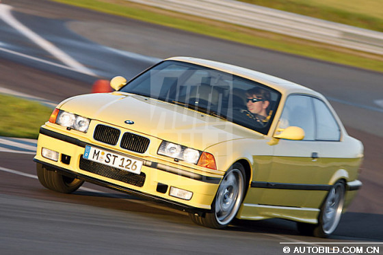 我们先来看最新款M3,它的厂家内部编号是E92。它搭载的是一款在M3的发展史上首次出现的V8发动机,最大功率可达420马力,是最早一代M3的两倍多。1986年面世的第一代M3,即E30配备的是只有200马力的2.3升四缸发动机,而且没有采用废气增压技术。我们的测试用车产自1987年,从博物馆里开出来后还能达到195马力,魅力依旧,光彩照人。方头方脑的车身造型、宽大的挡泥板和后导流板使E30在80年代风靡一时。即使用现在的目光来看,充分考虑了人体工程学的内饰设计仍然十分出色。中控台略微偏向驾驶员,所有的按钮都可以发光。可是为什么宝马公司把这么一个好的产品停产了呢?转动点火钥匙,立即就让人忘了宝马引以为豪的iDrive信息控制系统。启动时没有常见的隆隆声,四缸发动机很快进入怠速空转,发出的声音就象微笑一样含蓄。充分的暖车之后,E30在高速公路上可以毫不费力地超过时速200,考虑到测试用车已经比较旧了,我们没有测试是否能达到厂方宣称的最大转速7300。