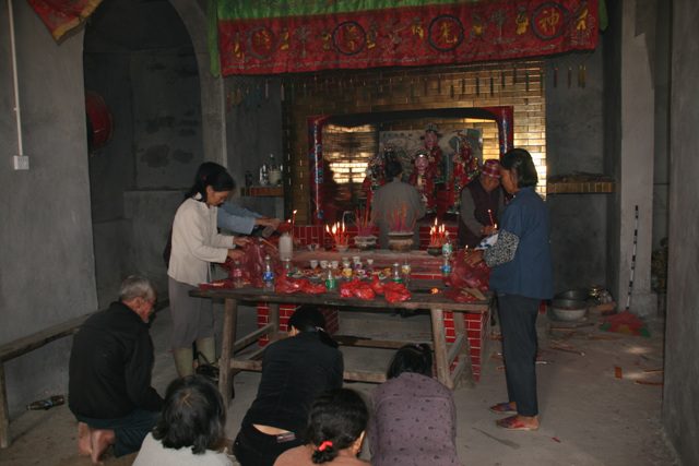 据说是他老婆来许愿,希望求得保佑为她添孙子,最后他儿媳妇生了双胞胎,他们特来捐款装修庙堂。