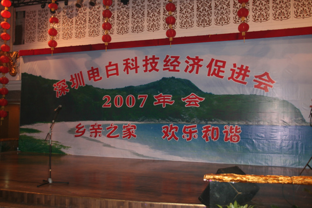 联谊会作为深圳的电白乡亲之家,成为会员、乡亲之间交流平台,沟通信息,紧密关系,引导大家共同发展,共同富裕,共同关心家乡建设。2007年初,联谊会在会长廖寿伦的带领下,先后参加了电白县委、县政府在广州天河大厦召开的恳亲会,参加了振兴电白广州联谊会的年会,互相交流心得体会,互相鼓励发展,一片欢乐和谐氛围。七月份,邵氏企业机构庆典成立三周年,盛情邀请深圳市房地产、物业管理、建筑工程等同行,共同研讨“行业发展及品牌竞争”。联谊会名誉会长、会长、秘书长等领导前往祝贺,借助庆典促进乡情交融,鼓励乡亲企业壮大发展,宣传邵氏企业机构诚信合作、良性竞争的优秀品牌。10月份,乡亲企业江海天化工、油墨东莞公司开业庆典,会长廖寿伦、副会长张辉、何进、刘雍钊、邵天胜、谢翠珍、卓佩丽、柯发青、黄碧春、崔锦昌、许玉提,秘书处的陈欢、蔡炳超、谢旭周等联谊会的领导参加了开业庆典,表示热烈祝贺!江海天化工东莞公司投资6000多万元,建设化工油墨工厂,年产值超亿元。电白林头籍老板蔡万江总经理誓言诚信、团结、求实、创新、安全、创造一流服务、一流产品、一流国际名牌企业!