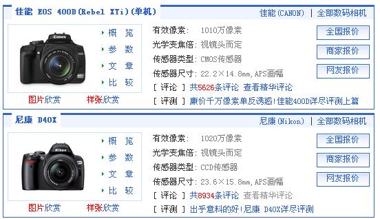 byronroy . 荣誉会员 注册 2005-08-17 消息 70,153 反馈评分 356 点数 191 2008-01-09 #1 http://www.pconline.com.cn/digital/dc/ping.../986756_15.html 请各位赐教! [attachmentid=158101] 对比表: [attachmentid=158103] 附件 fyi.jpg 46.3 KB · 查看: 562 D40X与EOS400D参数对比.doc D40X与EOS400D参数对比.doc 75 KB · 查看: 583