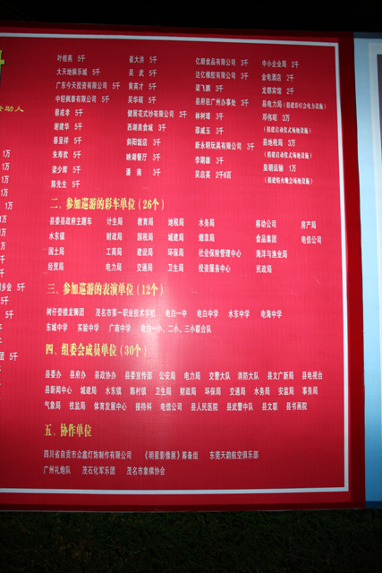 QUOTE(tpwuttih @ 2008年02月15日 Friday, 09:45 PM) 2008年春节期间霞洞放的烟花都不止200万了,可惜在县的烟花晚会上没捐多少钱,蔡得先生捐10万算少了,07年末他卖了一间印刷厂给澳科集团,25亿!自己买了辆路虎揽胜过年,他儿子开了辆宝马X5回电白!霞洞的王勇先生和树仔的林国文先生历年都没捐过钱给县放烟花,不过他们两个比鸣谢榜上的任何一个都有钱!林国文请了容祖儿和罗雪娟回来过年,王勇家门口则停了三辆242万/辆的新款奔驰S600!唉,真他妈奇怪,为什么越有钱的人就越是不给钱放烟花呢???? [snapback]2118229[/snapback] 就看个人的爱心、良心、家乡乡情。