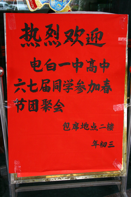 四中乐叔 版主 版主 注册 2006-05-06 消息 6,725 反馈评分 3 点数 61 2008-02-15 #20 春节期间流行聚会。一般以战友、同学聚会为主,时间一般从年初三开始,因为初一初二要忙于和家人亲戚一起过。地点通常选择酒店大房,聊天食饭有时直落唱歌。 这种活动越来越得到人们的重视,越来越多的人喜欢聚会了。过一个年甚至有几次聚会:大学同学、中学同学、小学同学,几种,一般以高中同学聚会的多。以致春节期间酒店的大厢房爆满,不提前四天订不到。 附件 IMG_8799.jpg 147.6 KB · 查看: 378 IMG_8798.jpg 165.8 KB · 查看: 352 IMG_8797.jpg 142.5 KB · 查看: 355 IMG_9002.jpg 90.4 KB · 查看: 322 IMG_9001.jpg 106 KB · 查看: 404 IMG_9000.jpg 105.5 KB · 查看: 380 IMG_8800.jpg 142.7 KB · 查看: 388 IMG_8789.jpg 152.6 KB · 查看: 407 IMG_8790.jpg 127.5 KB · 查看: 357 IMG_8792.jpg 143 KB · 查看: 419 IMG_8791.jpg 131.7 KB · 查看: 393 IMG_8793.jpg 88.9 KB · 查看: 351 IMG_8794.jpg 135.2 KB · 查看: 364 IMG_8795.jpg 166.9 KB · 查看: 361 IMG_8796.jpg 106.6 KB · 查看: 326