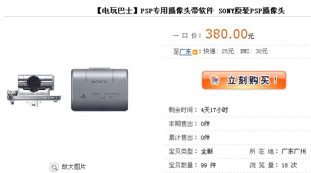 买来已经用了2个月,PSP因送给亲切了,留下个摄像头,所以出售.。。 {{全套都还在}}