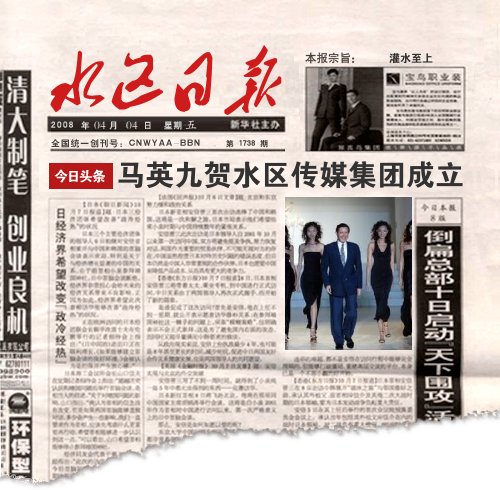 今日,水区传媒集团宣告正式成立。该集团由0668.CC控股.是新媒体传播平台.旗下传媒有CCTV.水区日报.水区娱乐时报.《TIME》杂志.瑞丽杂志等等.是传媒界的新兴力量.估计在未来将对中国传媒的格局发生巨大的影响. 各界名人纷纷对水区传媒集团的成立表示祝贺!