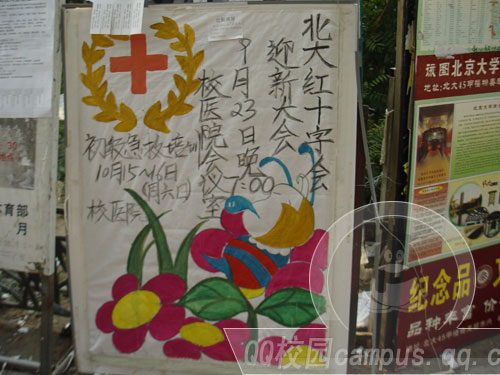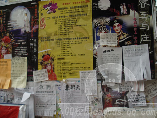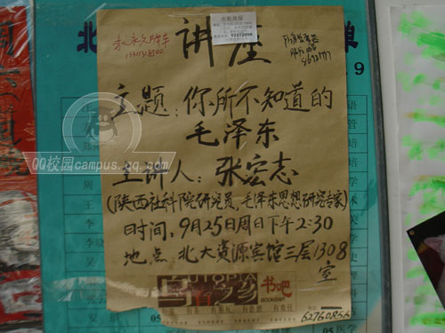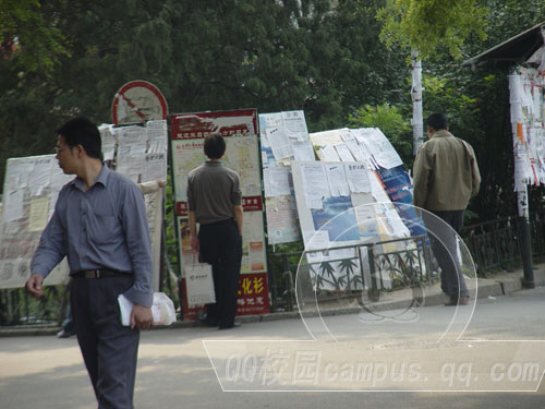 北京大学三角地,几十年来中国历次政治风潮的策源地之一。本来这是一个张贴各种学术讲座的海报的地方,但也曾经贴过有名的大字报的。现在,研究生和托付考试补习班的广告占了大半。