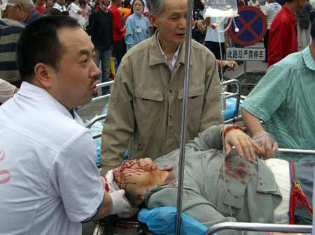 新华网快讯:进入汶川映秀镇的成都军区小分队报告,进入映秀镇的路上塌方十余处,70%以上道路损坏,桥梁全部倒塌,车辆无法通行,大量人员被埋,伤员急需救助,食品、饮用水极度短缺。