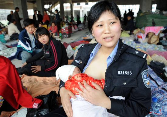 女警为地震孤儿哺乳!
