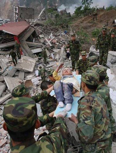 2008年5月17日,四川北川,北川救援的人员突然接到对讲机传来紧急撤退的命令,命令中称天上直升飞机发现北川县城后侧山顶上的茶坪水库出现裂缝,可以引发决堤,瞬间,在武警与警察地安排下,上万人的救援大军急速撒离。