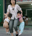 地震来临、、、母亲带小孩逃离、、、