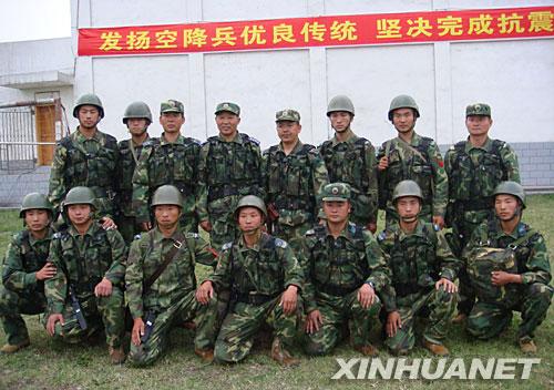 在四川抗震救灾的战斗中,5月14日冒险空降茂县的15名空降兵勇士,20日18时10分,安全回到成都某军用机场。他们是:李振波、王军伟、李志宝、殷远、郭龙帅、李亚军、赵海东、赵四方、雷志胜、刘文辉、王磊、余亚宾、任涛、李玉山、向海波。18时20分,当时第一个跳出机舱的空降兵研究所所长李振波大校。15勇士历经7个昼夜,冒着多次余震,翻山越岭,徒步220公里,先后在7个乡、55个村庄侦查灾情,向上级报告重要灾情30多批次,为指挥部指挥部队开进和部署抗震救灾提供了科学的信息依据。( 孙茂庆 申进科 摄影报道)