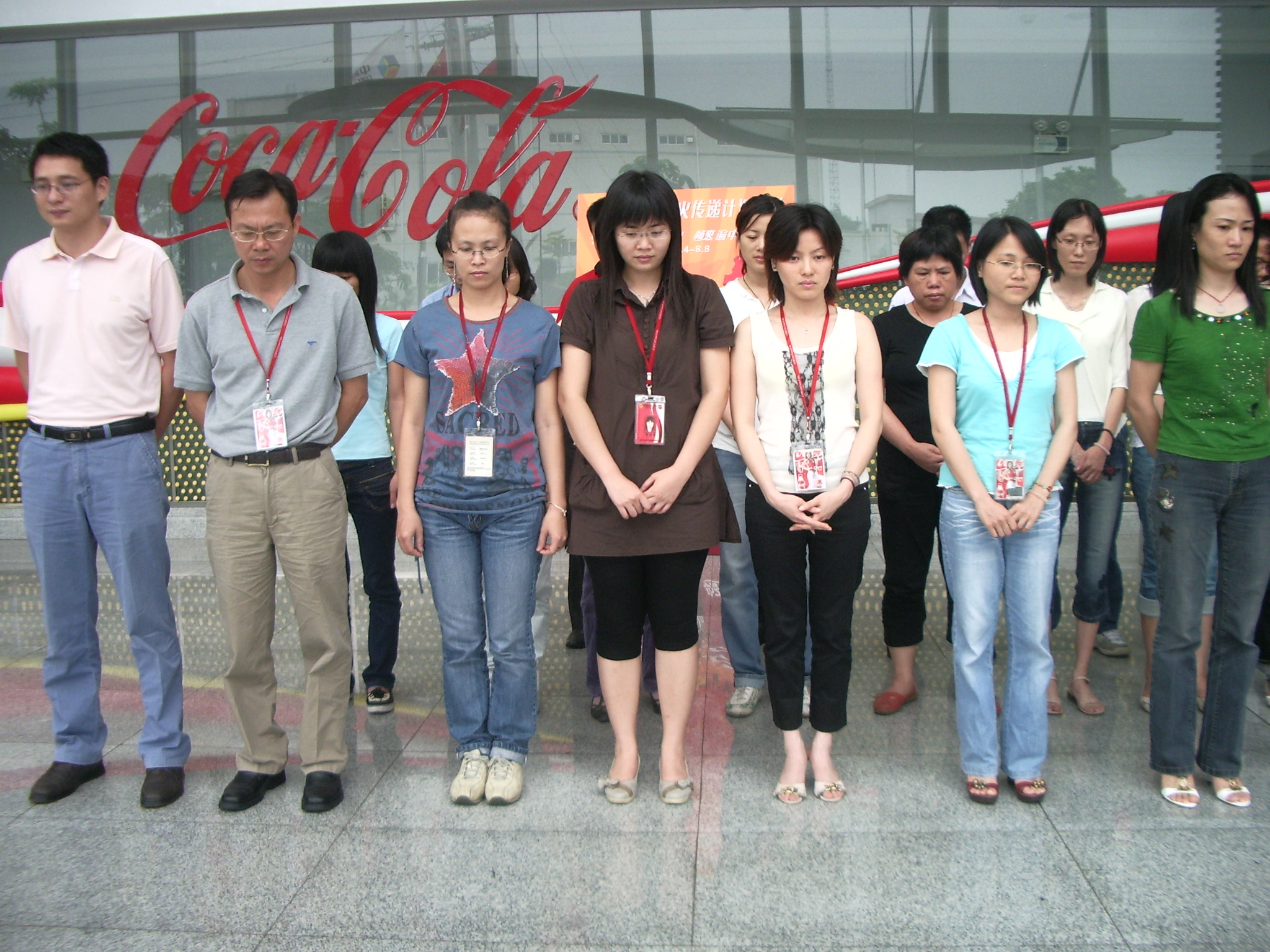 5月19日,举国之殇,全民同咽。举国上下共同悼念四川汶川地震中遇难的同胞之时,可口可乐全体员工也与全国人民一道为四川汶川遇难同胞默哀3分钟。