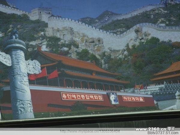 天安门中间的头像被换成一条白狗,左边写着宠物百货店,右边写着白狗村!!!!!!!!!!!!!!!!!!