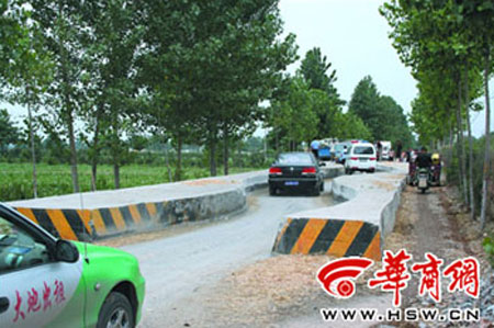 为了有效的治理超速问题,陕西富平县一段县级公路上被用水泥砌上高0.6米、长30米的蛇形路障,笔直的路面瞬间变成了S形。车辆穿行其中如同身陷古道,只得步步为营,龟速前进,稍有不慎或者是驾驶技术不过关就有可能引发刮蹭等损伤。目前这一消息经过大量转载,已经广为美国、英国、日本、韩国等国际网民所知,其中留言内容相当丰富,绝大多数人在表示惊讶的同时也承认设计者的思维真的很牛B!