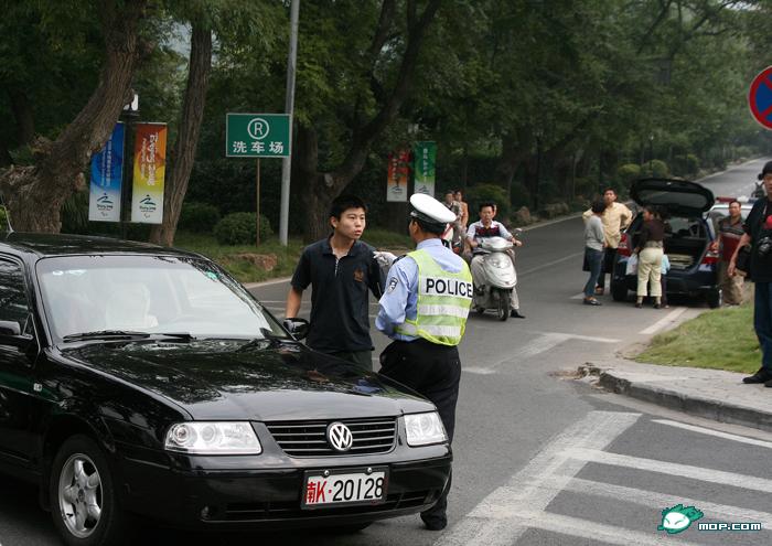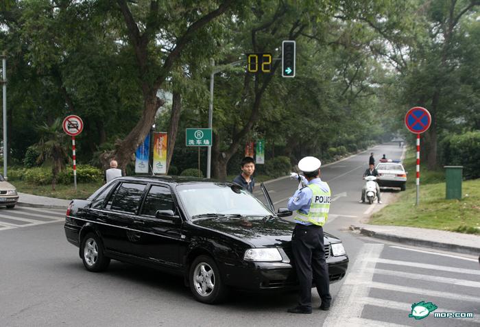 午10点路过南京中山陵前湖路口,看见一挂军牌车辆逆向闯红灯被交警阻拦!军车不听劝告!