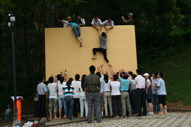 QUOTE(四中乐叔 @ 2008年10月29日 Wednesday, 09:54 PM) 2008-07-30深圳南澳拓展训练 [snapback]2529946[/snapback] 翻毕业墙,4米的墙,靠团队协助,把每个队员接上翻过毕业墙。