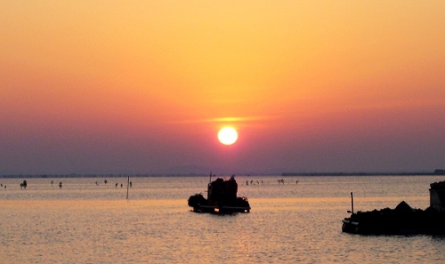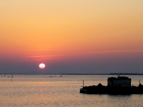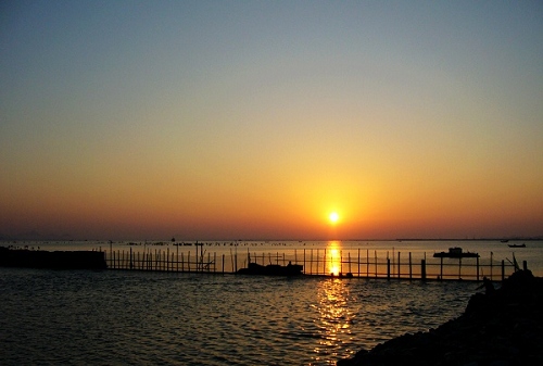 拍日出真的很辛苦``五点多就要到海边守候着``蚊叮虫咬不算``路上鬼影都没见一个``但为了捡几块砖头``