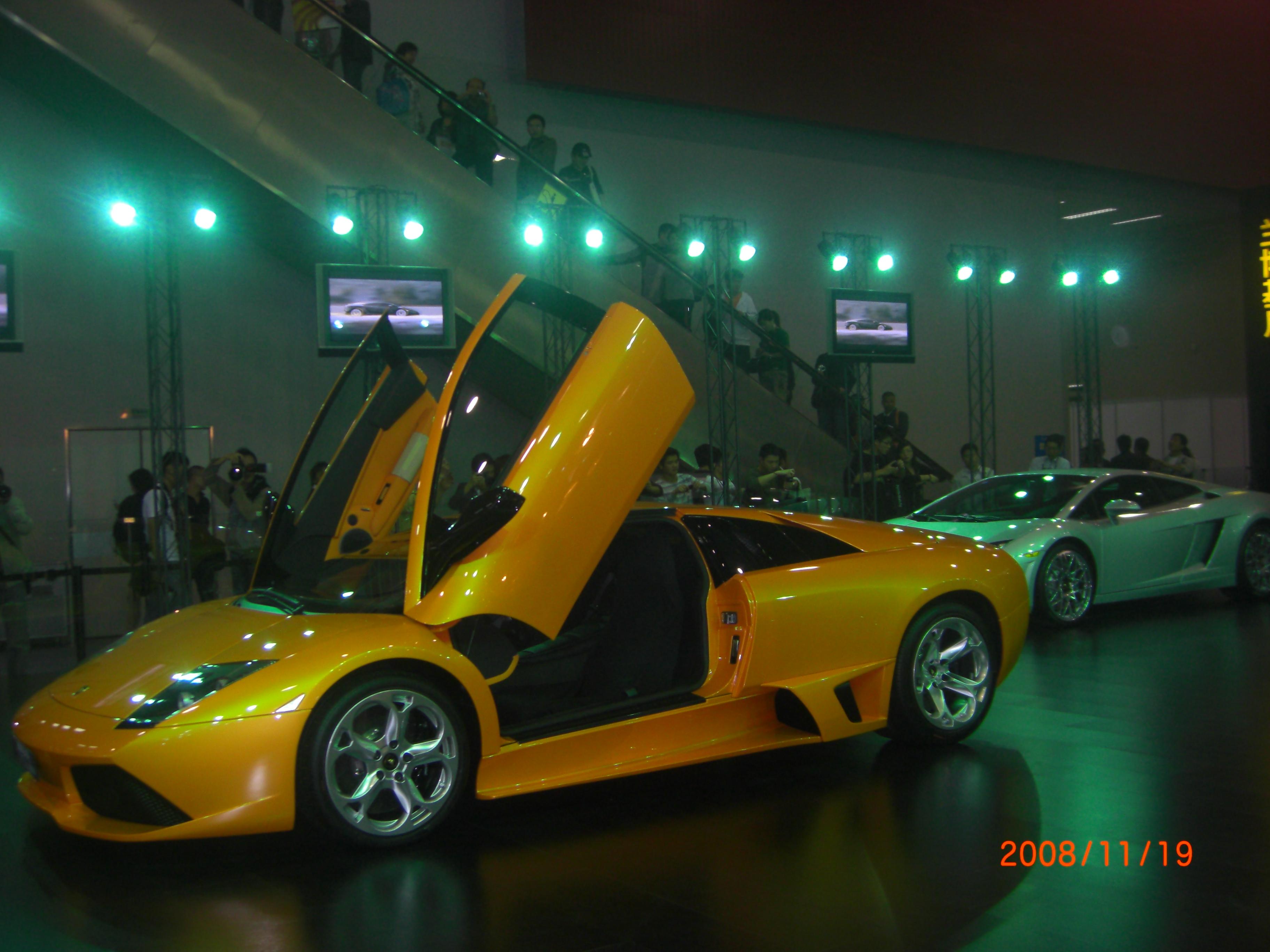 喜欢那辆有点黄黄的 车门竖起来的那种