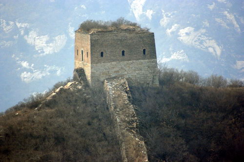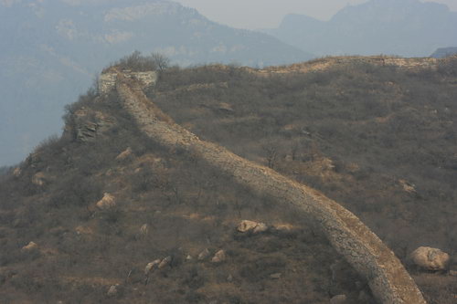 我见烽火台脱落的长城砖散落无数,有些完好,很有收藏价值,想拿两块回家镇宅用,太重,不便,行不远,放下,行十几步,还回头望望,现在相起,总感遗憾。