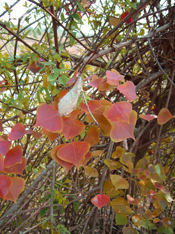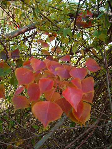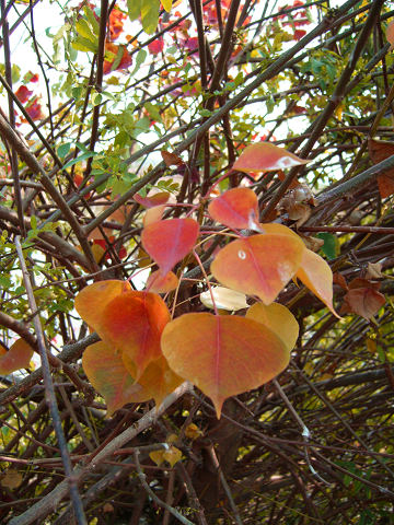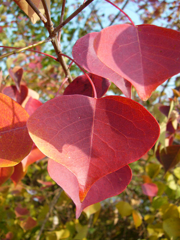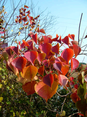 对红叶一直有种特别的感觉`秋冬时节`总想去哪赏赏红叶``无耐身在南方`自认与红叶无缘``只好作罢``有天经过水林路`只见两旁荔枝林里`点缀着一片片红色的小叶子`在一大片绿色的衬托下`煞是好看``慌忙停车细瞧`果然是```` 听说这是一种叫乌柏树的叶子`虽没有枫叶般美丽``但颜色同样是红红的``多少都算找到一点点感觉了``