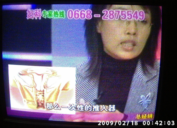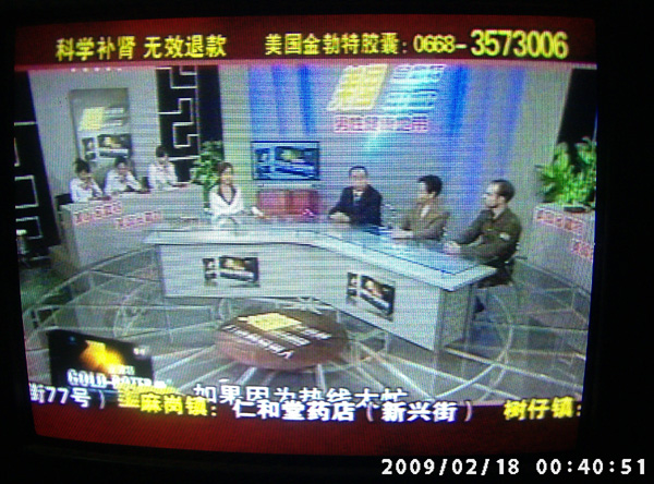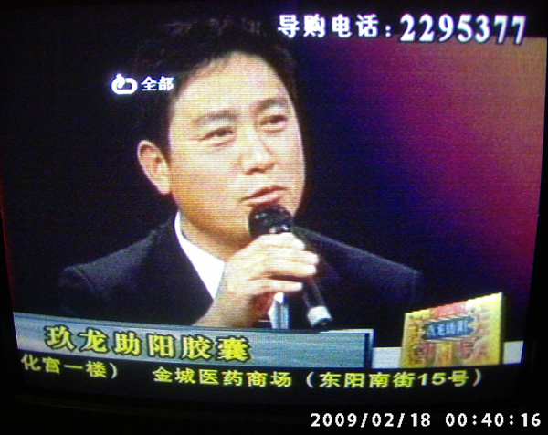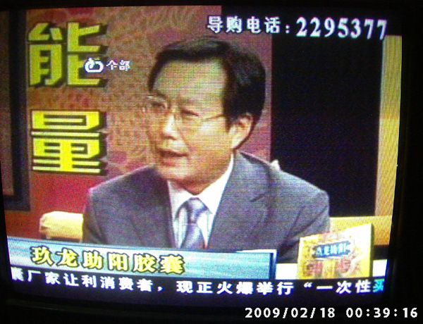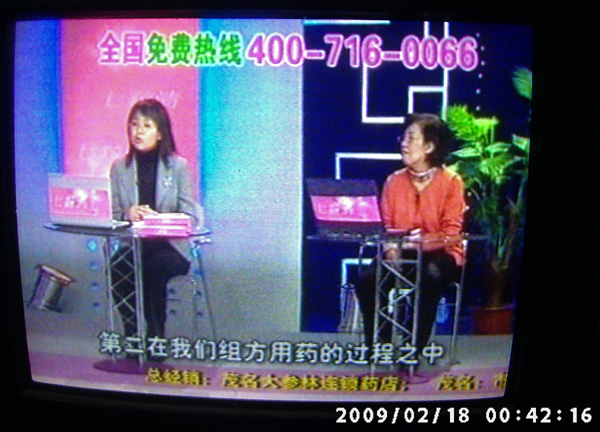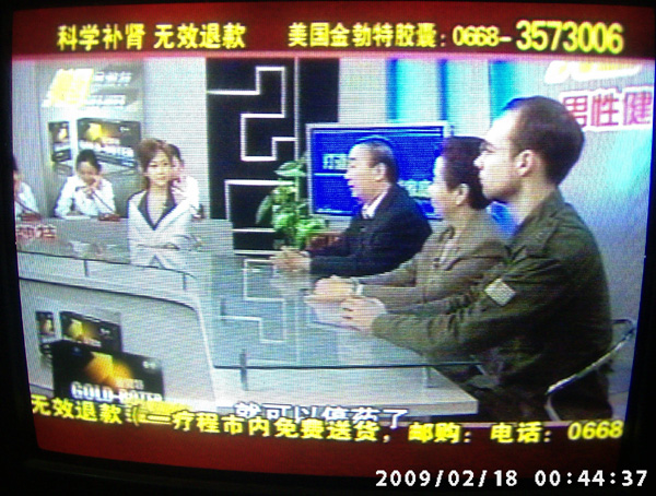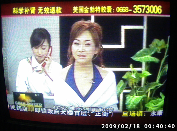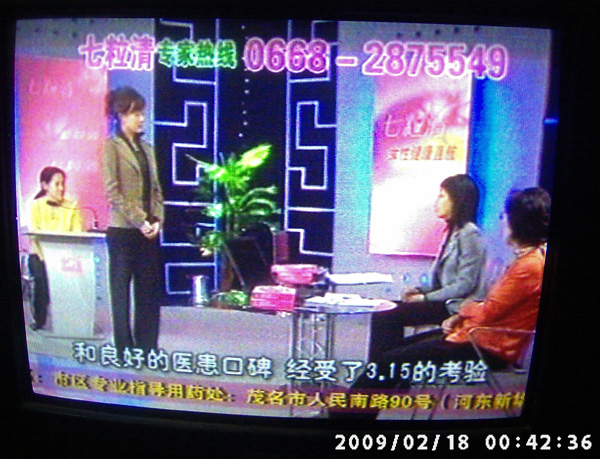 但某县有线电视台2009年2月18日仍在播放涉嫌虚假违法的医疗和药品广告(见下图)。