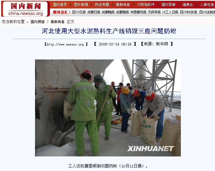 QUOTE(kenneth @ 2009年02月20日 Friday, 07:45 PM) 河北使用大型水泥熟料生产线销毁三鹿问题奶粉 [attachmentid=207037] [attachmentid=207038] 新华网石家庄10月13日电(杨守勇、崔怀纲)记者从冀中能源金牛股份水泥厂获悉,邢台三鹿乳业有限公司沙河分公司封存的2吨问题奶粉日前在该厂逐步实施销毁行动,这标志着河北省使用大型水泥熟料生产线销毁问题乳制品的方案开始实施。 据介绍,根据河北省政府办公厅《河北省生产企业问题乳制品销毁办法》的要求,全省生产企业封存的问题乳制品必须在10月20日前彻底干净地全部销毁掉,不留任何隐患。 为确保按时完成销毁任务,河北省政府制定了科学合理的问题乳制品销毁方案,从10月11日到20日每天将有上百吨的问题奶粉运往位于石家庄的鼎新水泥公司和邢台的金牛股份水泥厂,使用水泥熟料生产线进行销毁。同时,省工商、质监、环保、监察等部门和生产企业均派驻人员,现场监督,多方签字,确保不流失一袋问题奶粉。 据金牛股份水泥厂负责人介绍,该厂拥有两条日产2500吨的新型干法熟料生产线,采用国际先进的窑外分解技术,窑内温度稳定在1000摄氏度以上,各种废料都可以在窑内分解燃烧,可以将问题奶粉彻底销毁。 http://china.newssc.org/system/2008/10/14/011183409.shtml 【以下内容纯属个人YY,如有雷同实属YY】 你有张良计,我有过墙梯!正所谓道高一尺魔高一丈。 [attachmentid=207039] [snapback]2693303[/snapback] 晕,站最前面那两个穿的是消防战斗服哦,绿色偷窥也是消防头盔来的
