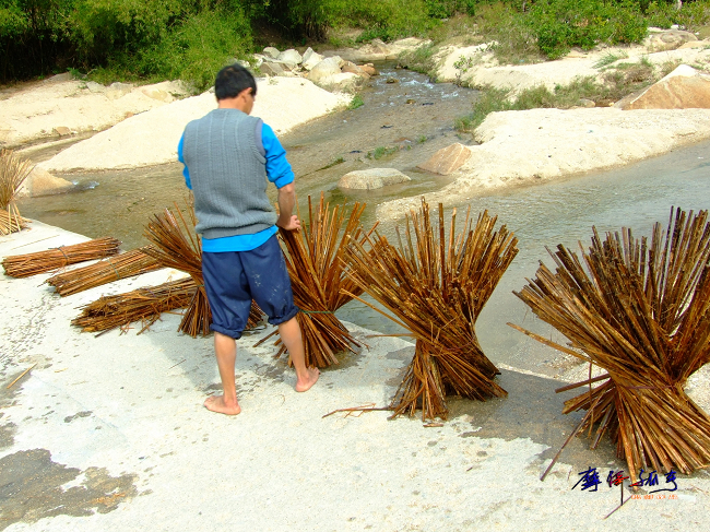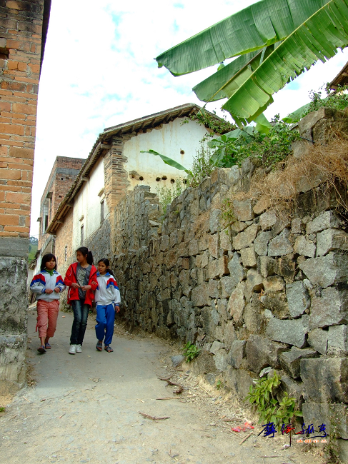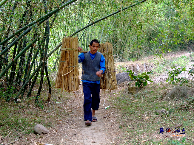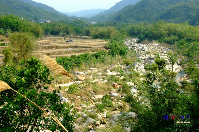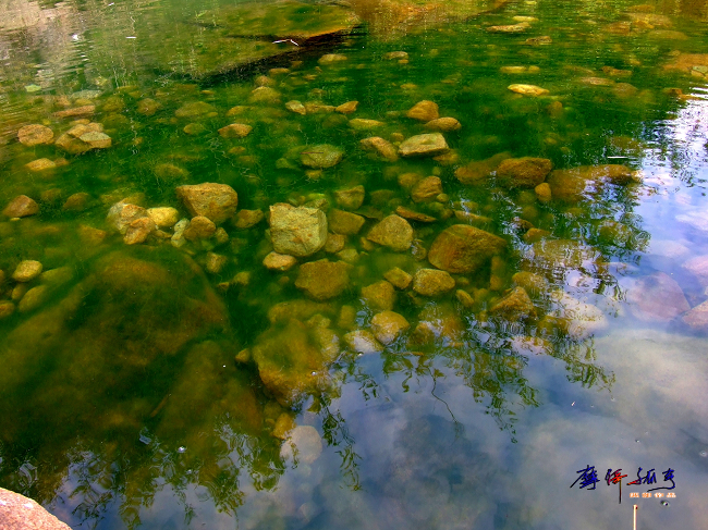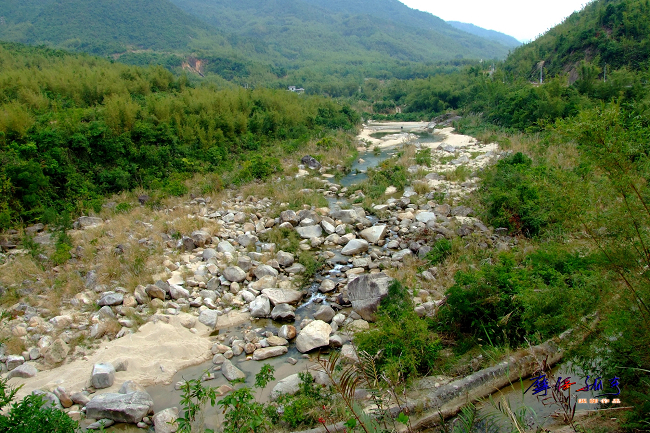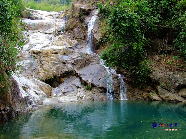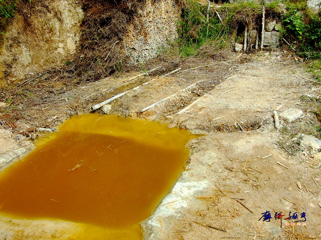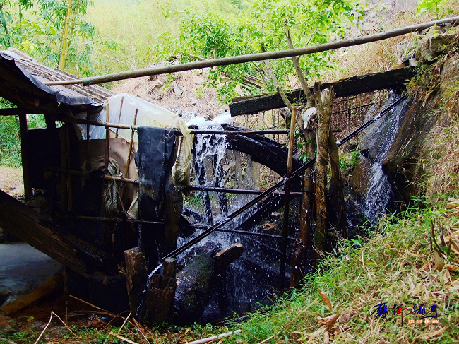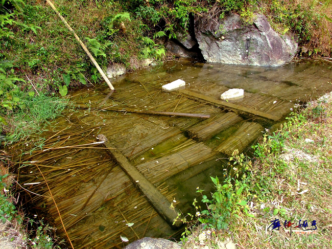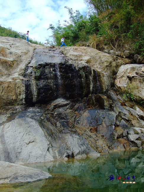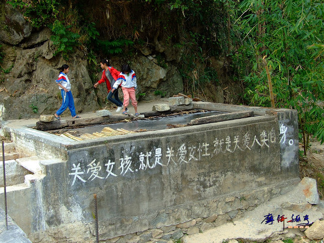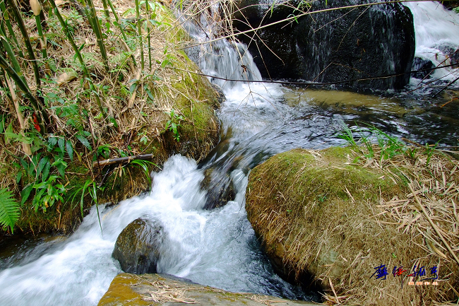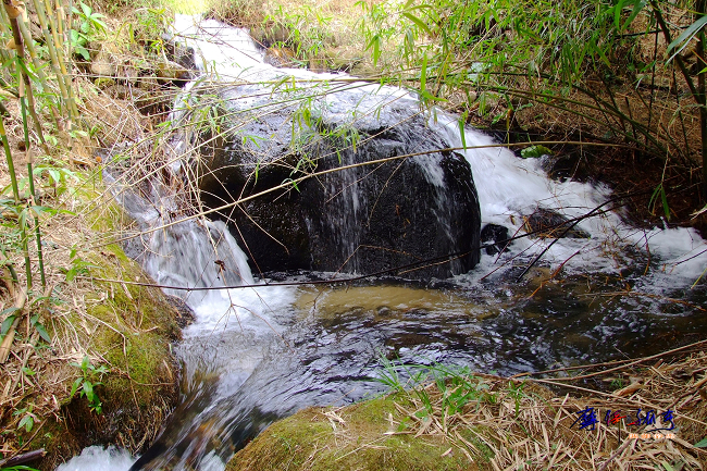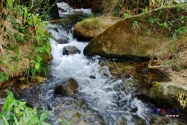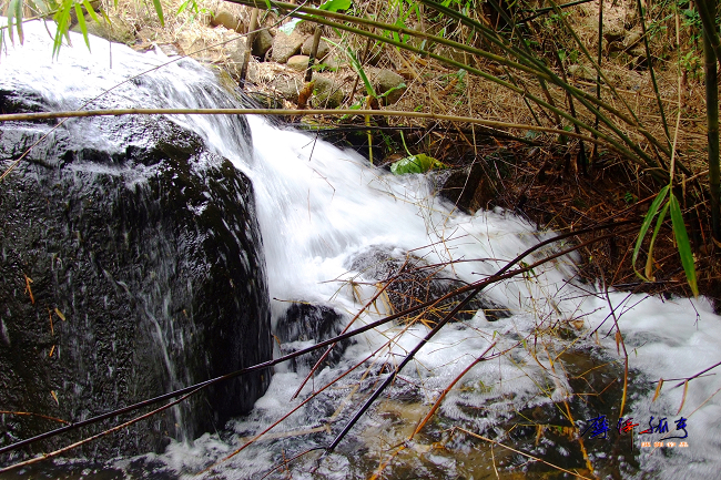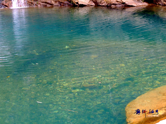 ――上山找瀑布 在村口我遇上几位小孩,他们纯朴热情,带我穿过他们的村子,沿着水泥砌成的引水渠上山找瀑布,可惜当时正逢枯水期,没看成大瀑布,但潭水却清澈见底,映着篮天翠竹,就像镶入深山里的一颗翡翠。