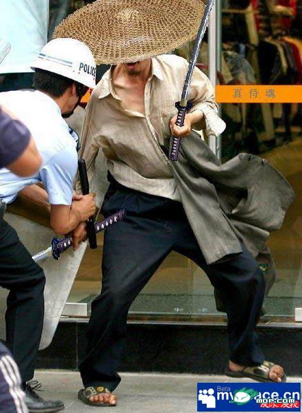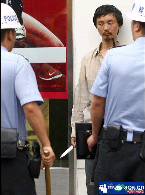 这名不速"刀客"出现在成都最繁华的商业街--春熙路上,只见他突然拔出尖利的水果刀一阵乱舞,吓得过路美女们尖叫失声。闻讯赶来的保安、巡警用"人墙"将"刀客"逼在一商铺门口,临近的几家商铺紧急关门,停止营业。